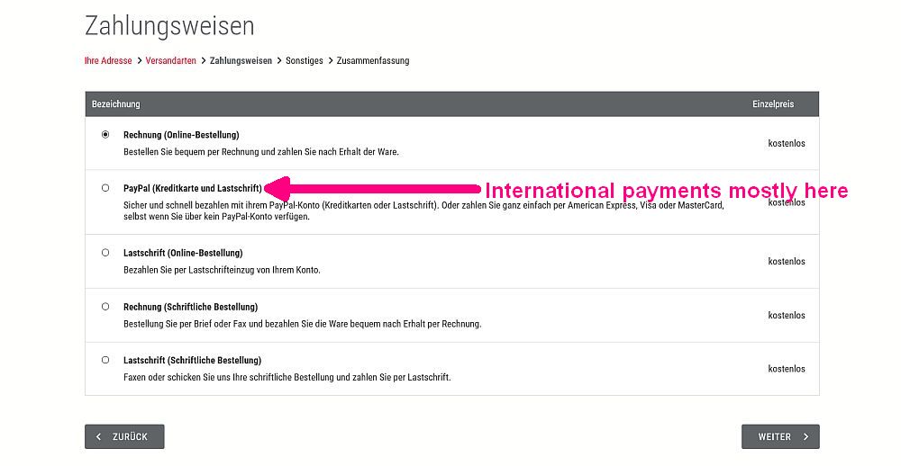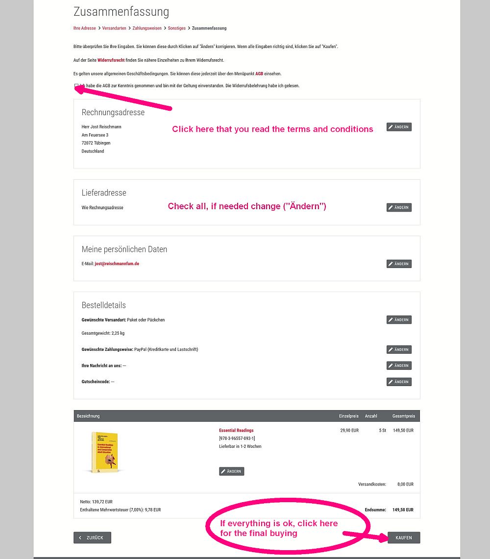The next window asks for the address where to send the book(s) to. *If you find your country not in the scroll list send a mail to ferstl@ziel.org. He ist the publisher, and is very helpful to make it possible that you get the book.